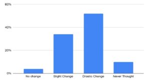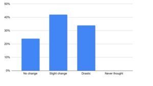 When asked about changes in their media habits since leaving the state, 4% of respondents reported no change, 34% observed slight changes, and 52% indicated significant shifts in their media consumption patterns. Approximately 10% of respondents did not consider this aspect.