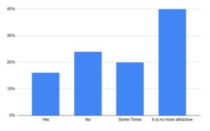 When asked about their radio listening habits, 24% of respondents indicated they listen to radio regularly, 42% reported occasional listening, and no respondent stated that radio is no longer appealing. These findings suggest that radio continues to hold some level of popularity among the youth.